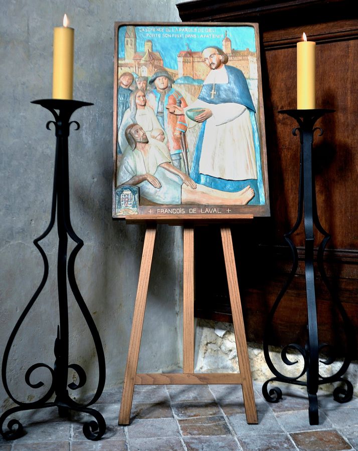 Le 8 octobre 2014, lors du pèlerinage Sur les pas de François de Laval et de Marie de l’Incarnation en France et à Rome, le Cardinal Lacroix, au terme d’une messe solennelle qu’il a présidée en l’église Saint-Louis du Prytanée militaire de La Flèche, a béni un bas-relief montrant François de Laval auprès d’un malade. Ce bas-relief, œuvre de Jacques SERGEFF, est installé dans la chapelle des saints de l’église Saint-Louis.